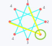This time one of the ends has a 1, so we can put another 4 at this point. We only have one point left, let’s see what number we will be able to put. Will it be a 4?