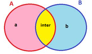There is another type of Venn diagram which is the one with a common area between sets A and B. This area is called an intersection (inter).